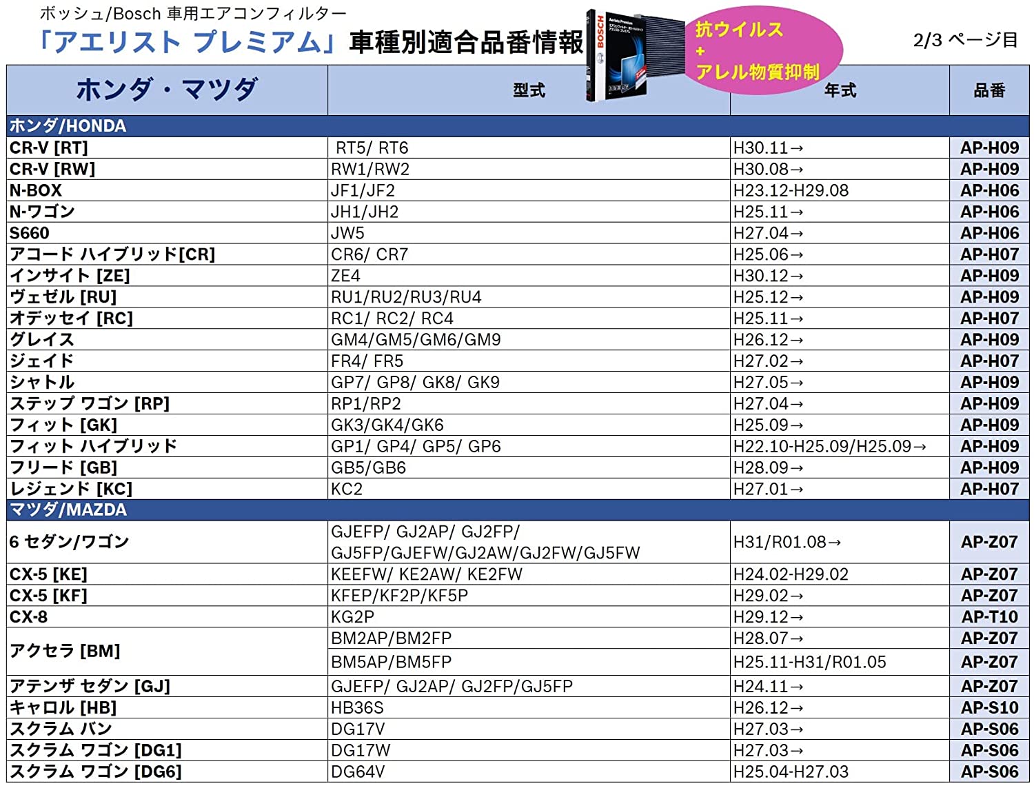 Applicable for:Honda Jazz 2003 - 2008Perodua Myvi Lagi Best 2011 - 2015Perodua Myvi Icon 2016 - 2017Perodua myvi 2018Perodua BezzaPerodua AlzaSuzuki AltoSuzuki SX-4Suzuki SwiftToyota Rush 2008Bosch Premium Cabin Air Filters, deliver original equipment fit yet drastically improved quality for a cleaner, healthier passenger cabin air quality.Pollen and harmful substances inside a vehicle can be up to six times more concentrated than outside. Bosch Premium Cabin Filters prevent harmful spores and pollen from entering the vehicle interior and keep passengers and downstream HVAC components protected.Features & Specs:Allergenic Inhibitor - A layer with natural polyphenols that are extracted from lemon balm to effectively inactivate the potency of allergens. Polyphenols wrap around trapped allergens & render them hypoallergenic. FYI: Polyphenol is also a super anti-oxidant w/anti-aging and healing effects.Anti-Microbial - A silver (Ag) impregnated layer that has been proven to be an effective, all-natural, anti-microbial element. Silver nanoparticles curb the growth of a wide spectrum of mould, dust mites, bacteria, etc.Deodorization - An innovative 3-layer activated a charcoal system that is effective in absorbing odour, dust, smoke, exhaust gas, pollen, toxins, foul-smelling gases (e.g. ozone, nitrogen oxide, sulfur dioxide, hydrocarbons), all particles that are in the 3 microns range. Activated carbon also deactivates many antigens & pathogens. Outer 2 layers are made of nonwoven synthetic fibre. Airflow is minimally restricted.Particulate Filtration - BOSCH Particulate Filters absorb up to 100% of all pollen, dust particles & harmful substances. This results in a noticeable improvement in air quality. Mould-resistant multi-layer media: 1) non-woven pre-filter layer, 2) electrostatically-charged microfiber layer, 3) non-woven cover layer. This 3-layer system allows more pleats (surface area) for higher filtration capacity, captures larger contaminants, attracts & holds elusive smaller particles, and prevents harmful particles from bypassing the filter media.