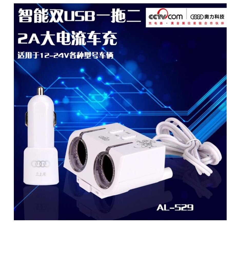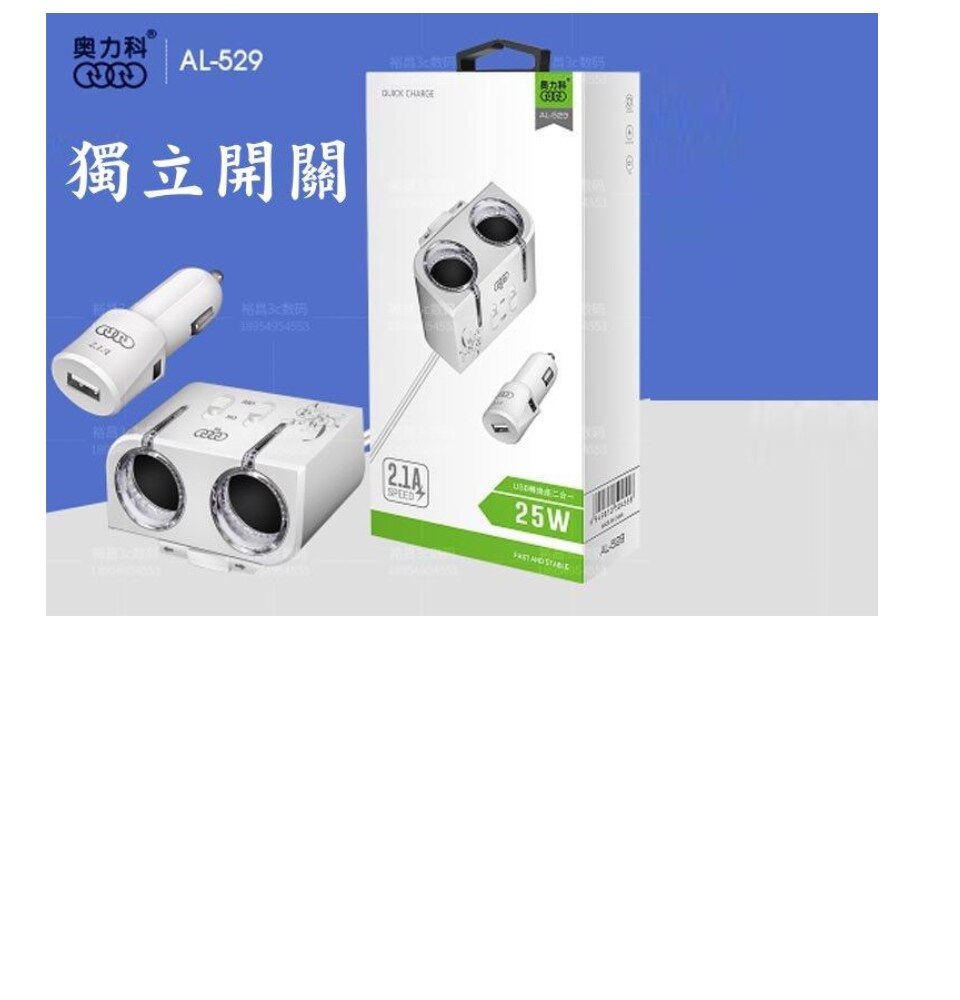 Car charger USB 2 dual socket cigarette lighter adapter extension splitter plug 2.1A speed 25W quick charger