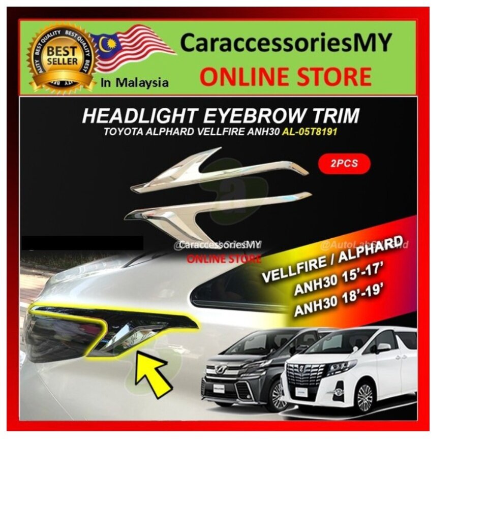 Toyota Vellfire ANH30 2015-2020 Headlamp Chrome Garnish Cover depan cover Headlight Eyebrow Trim accessories decoration modify