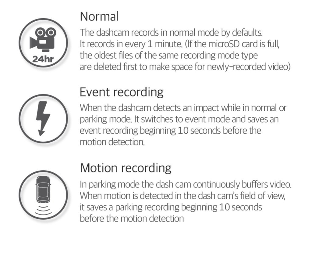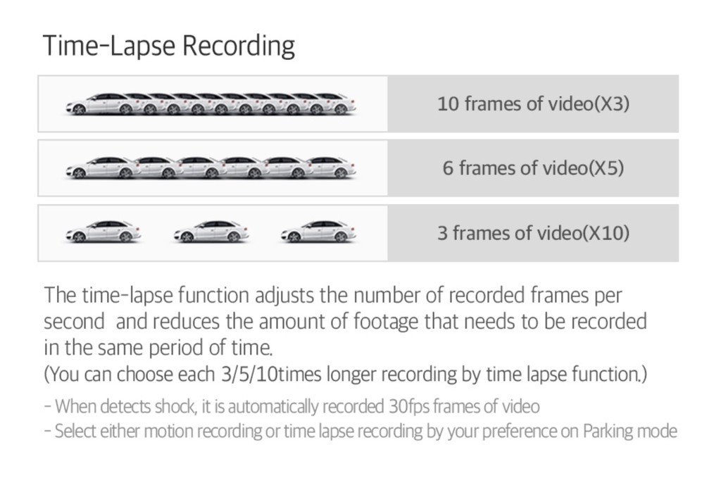 True 24/7 recording (time-lapse with impact detection/motion detection) allows you to catch the heartless ones who’ve hit your precious vehicle & made a run for it!