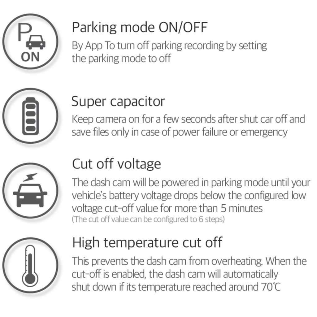 Besides protecting your vehicle from potential damage, the Dashcam is equipped with a super-capacitor with thermal protection to withstand the heat & tests of time.
